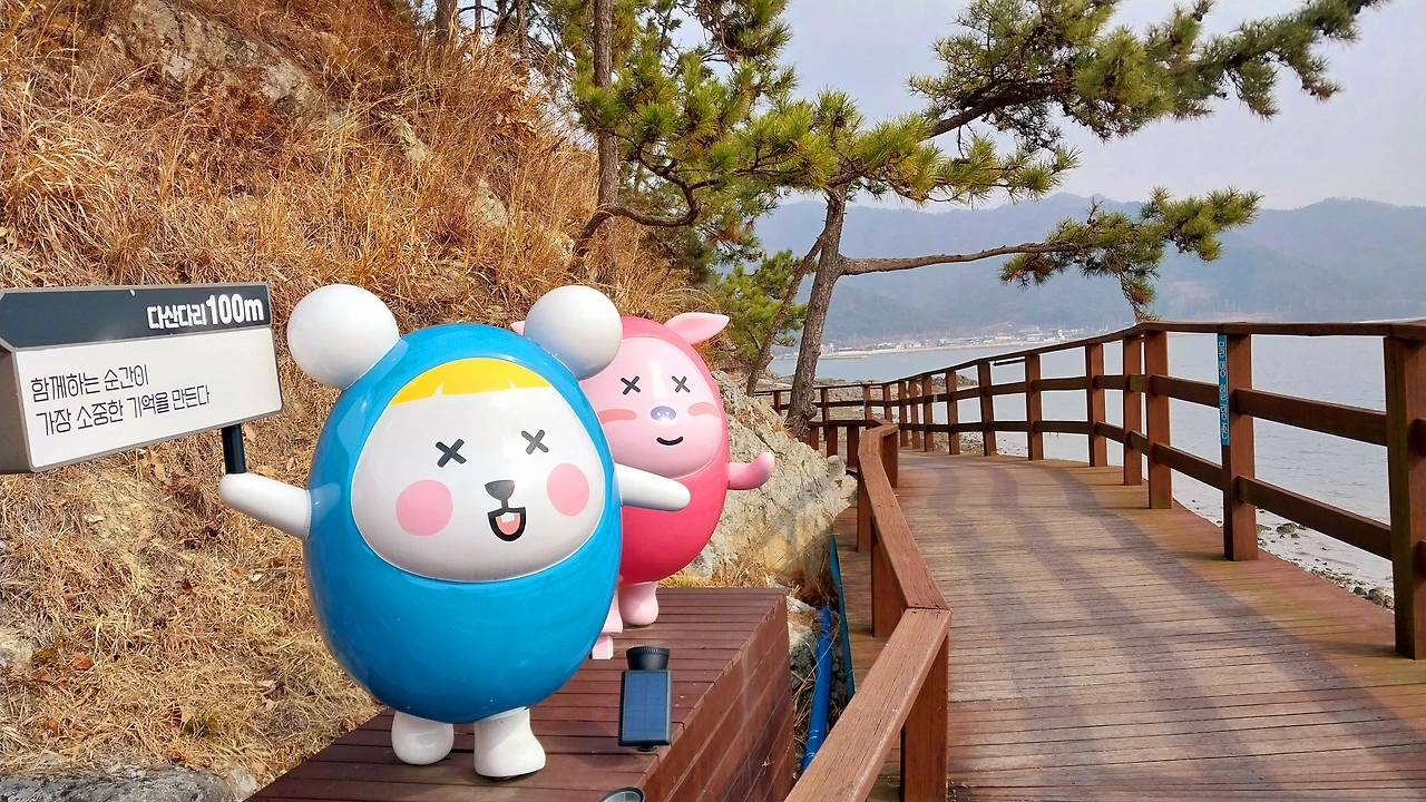 바다를 가로질러 놓인 다산 출렁다리라고 해서 바람이 부는 오후 시간이라 약간 겁도 났지만 우린 용감하게 들어섰다