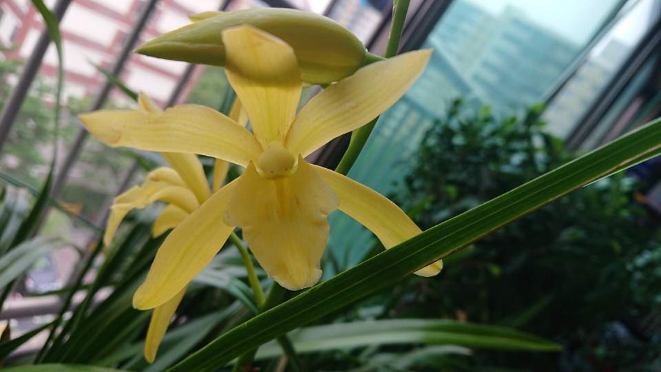 발코니 건 난 활짝 웃으며