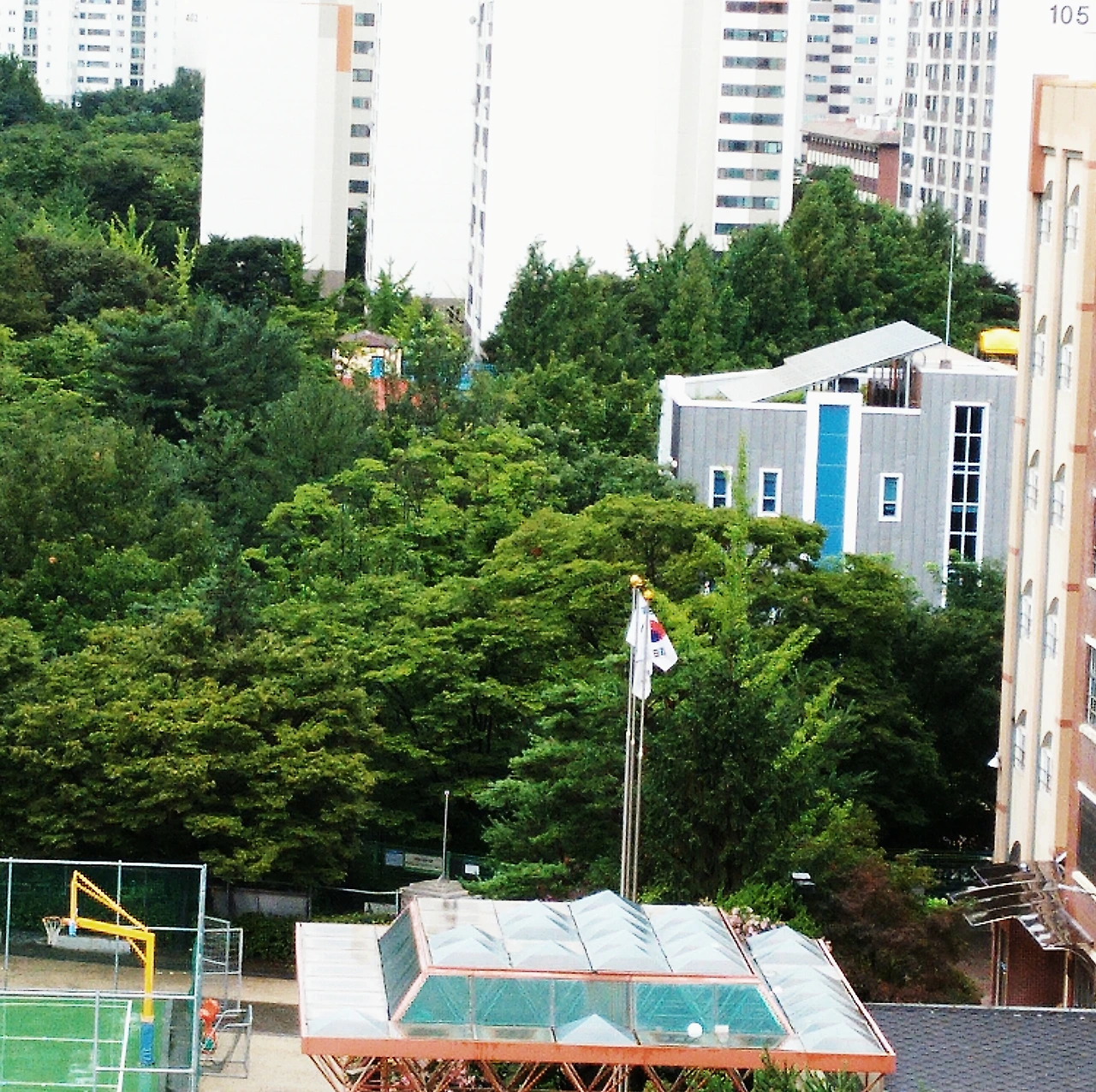 답답한 마음에 창 너머 중학교 게양대를 본다