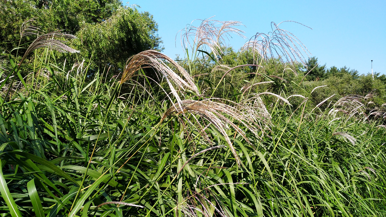 파란 하늘에 은빛 갈대