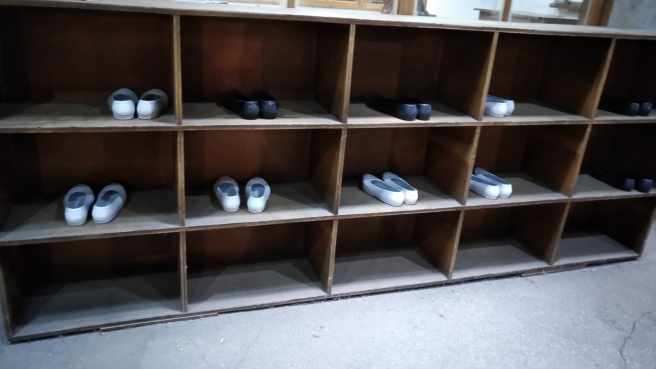 신발장에 하얀고무신 검정고무신