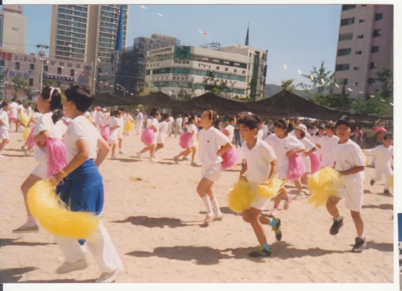 운동장엔 만국기가 펄럭이고