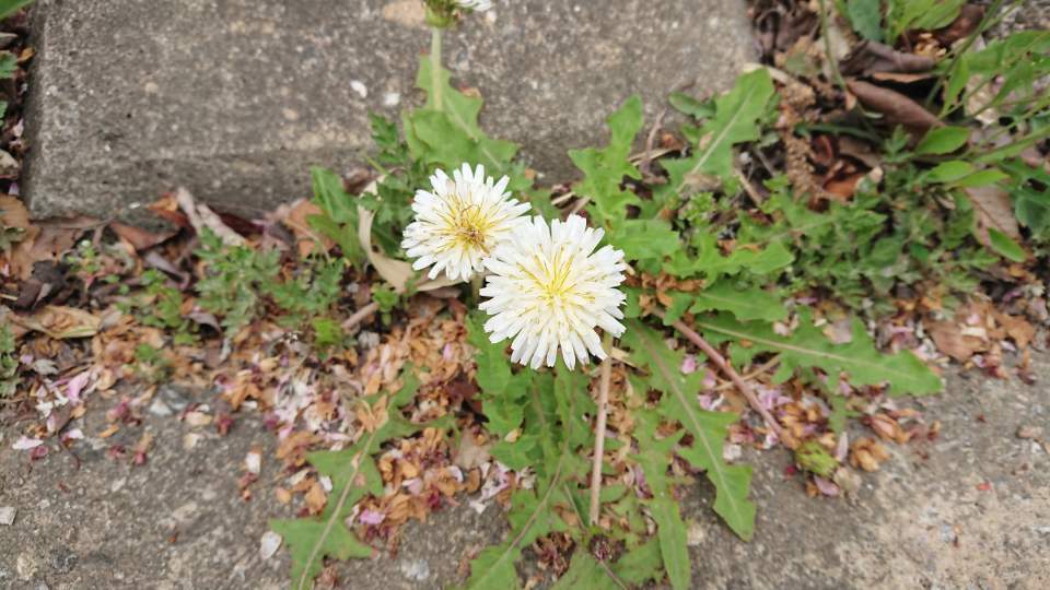 길가 돌 틈 하얀 민들레