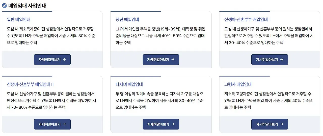 도시재생 사업지에서 마을조합이 거점공간을 위탁받아 공공적 주거사업을 하는 경우 이는 사회적주택으로 보아야 하며 이 경우의 임대료 산정은 비슷하게 진행되는 LH의 매입임대주택을 따르는 것이 합리적이다.(아래 사진과 같이 LH는 임대자에 따라 몇가지 유형의 기준을 가진다.) 청년을 대상으로 하는 경우는 시중가의 50% 이하에서 임대료를 책정하는 것이 바람직하다.