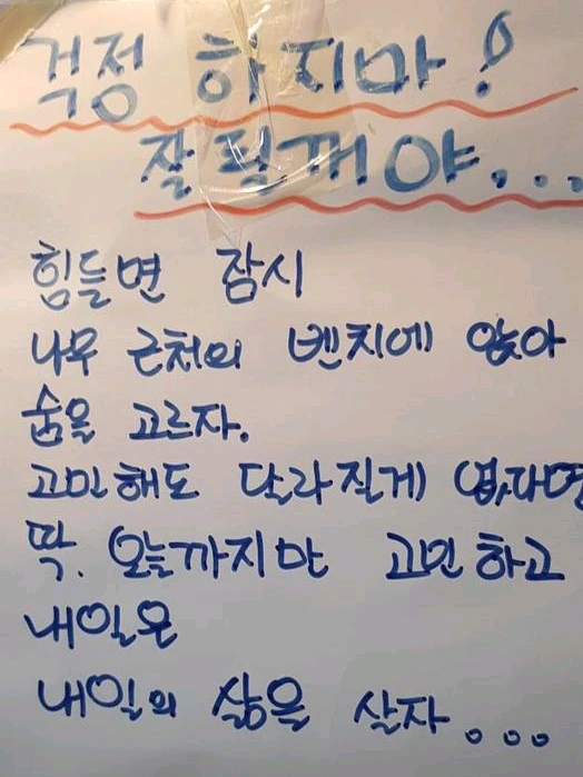 엄마는 퇴원을 하고 다시 일상으로 돌아와 엄마 자리를 지키고 있다. 엄마의 집 벽은 엄마가 써놓은 좋은 글귀로 가득하다.