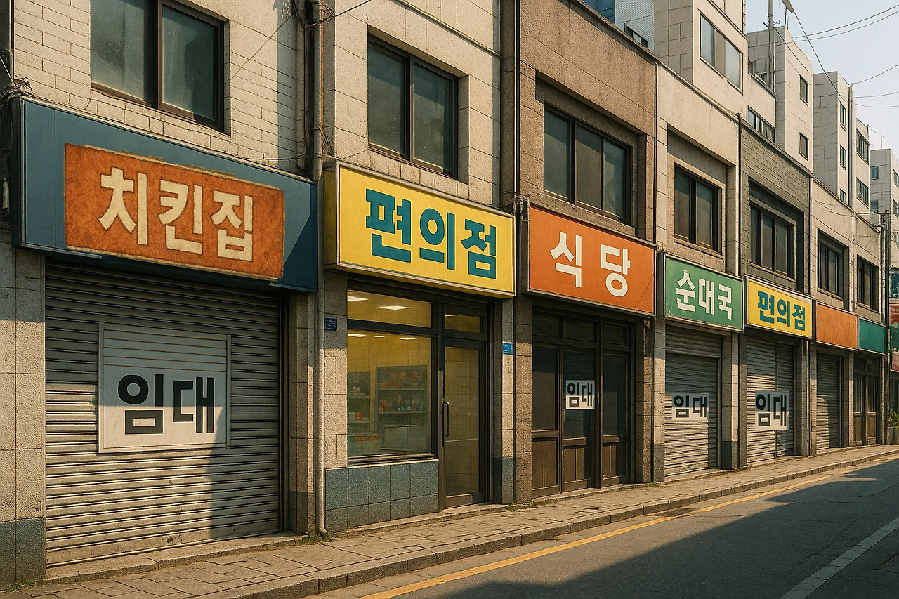 (어찌 된 일인지 율리가 '간판'이라는 시로는 그림을 그리지 못함. 그래서 상가 그림을 그려 달라해서 포토샵으로 '간판 이미지와 과 임대 이미지'를 가져다 넣음.)