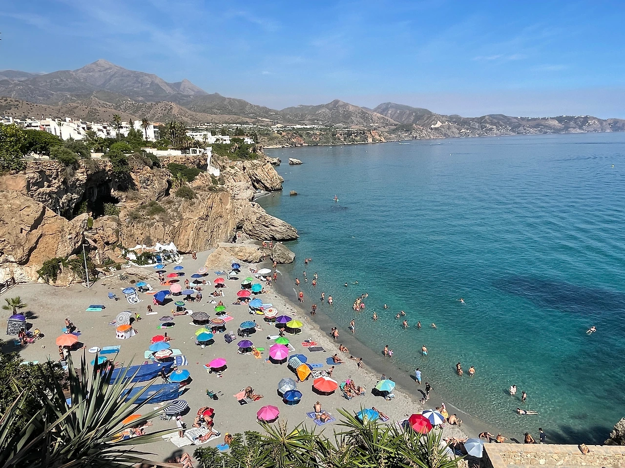 예전 바르셀로나만 갔을 때도 그 바다색에 흠뻑 취해 한참을 멍하니 바라만 보다 온 적이 있는데, 휴양지로 유명한 네르하는 정말 듣던 대로 감탄을 자아냈다. 그냥 저 사람들 속을 비집고 달려가 바닷속에 풍덩 하고 싶었다.