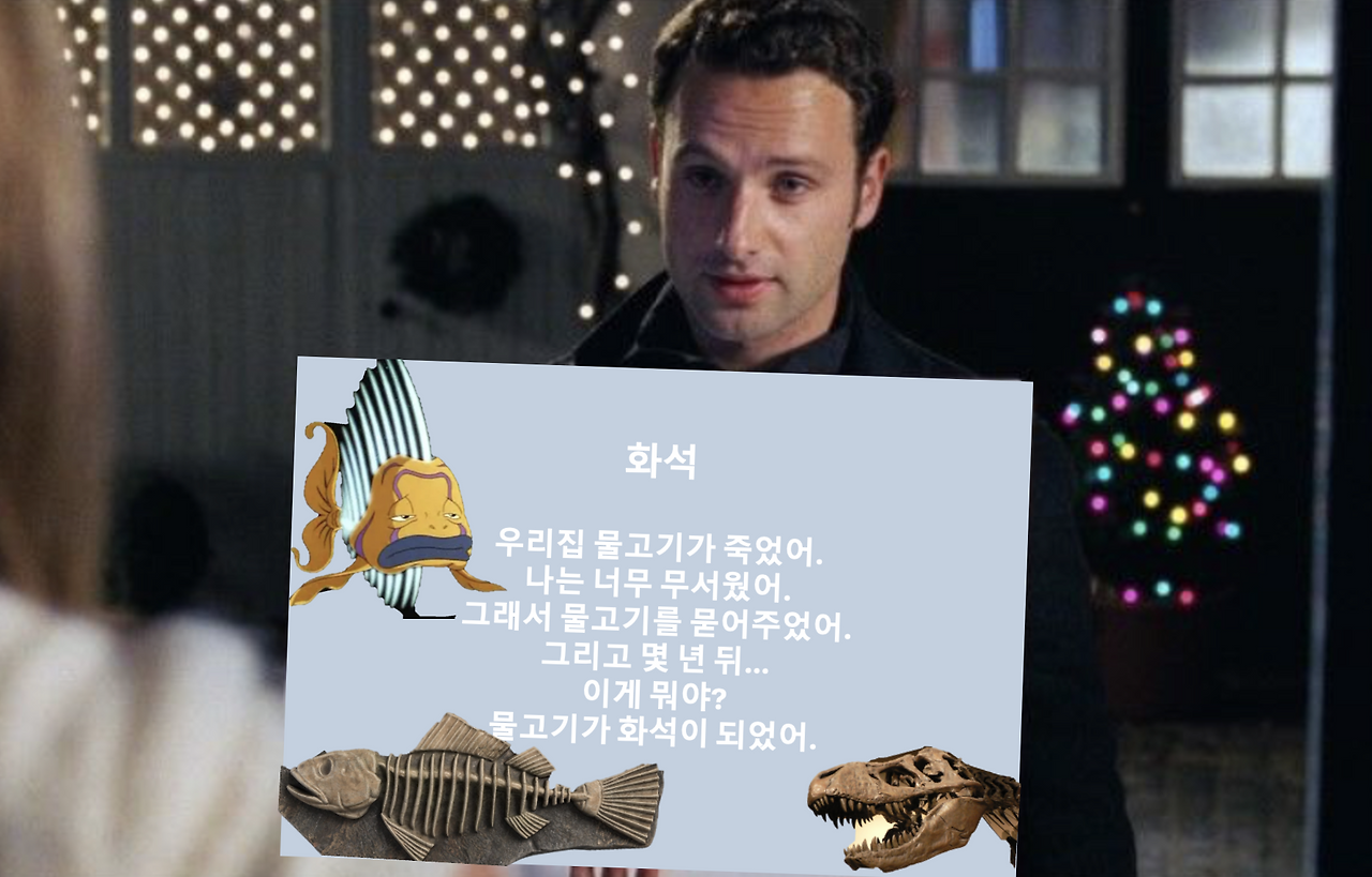 죽은 물고기에 대한 슬픔을 화석으로 표현하여