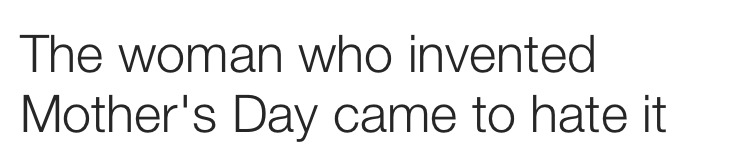 '어머니 날을 만든 그녀, 그 날을 혐오하게 되다' 정도의 뜻인데