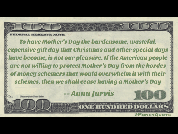 어쨌든 자비스는 생전에 어머니 날의 상업화를 몹시 싫어했고