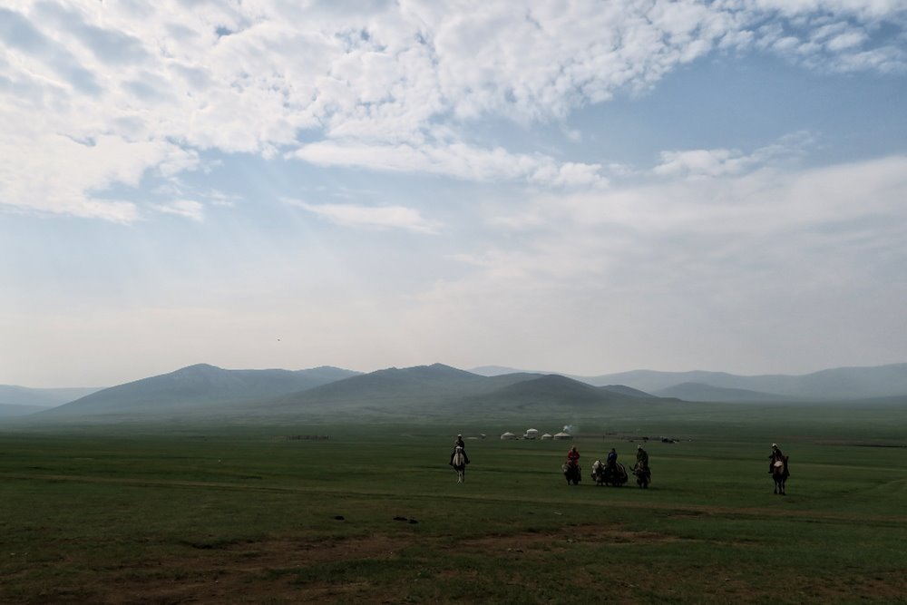 첫날 아침, 캠프에 도착해 게르에 짐을 풀고 말을 타기 위해 초원으로 향합니다.