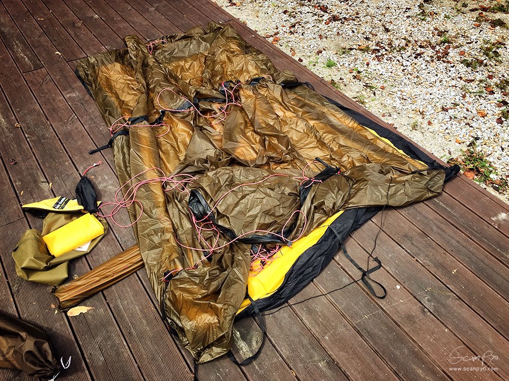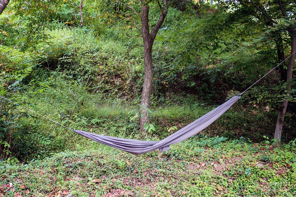 아이들을 위해 해먹을 다시 설치합니다. 엑스패드의 경량 해먹으로 무게가 300그램 정도 밖에 되지 않습니다.