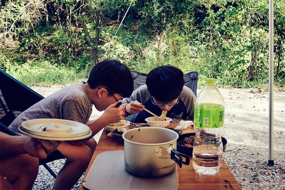 물론 대단한 요리는 없습니다. 라면같은 간단한 조리가 대부분이죠. 하지만 작은 노력으로 함께 만족할 수 있으니 이것 역시 남자들만의 캠핑이 주는 매력이라 할 수 있습니다. 물론 이를 일반화시키는 것은 아닙니다. 요리를 잘하는 아빠도 얼마든지 있고 음식에 깐깐한 녀석들도 있겠지만 (다행히 부전자전이랄까...)