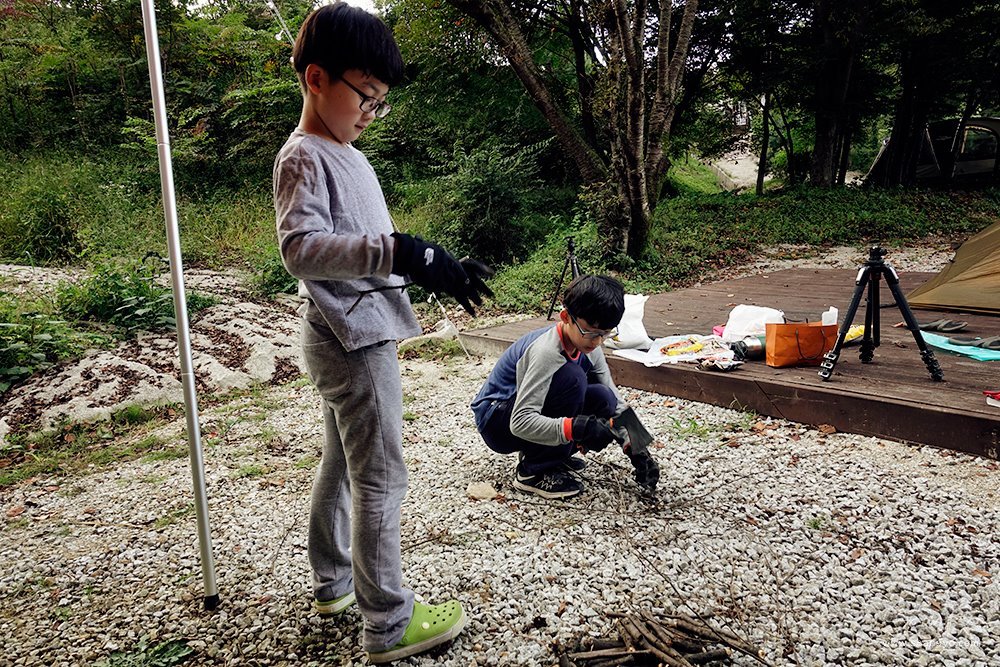 일상에서 우리는 어떤 마음으로 밤을 맞이할까요? 분명한 것은 캠핑에서 밤을 기다리는 것만큼 가슴 셀레진 않을 것입니다. 아이들은 본능적이라 할 만큼 금세 자연에서 놀거리를 발견합니다. 오늘은 주변에서 불장난을 위한 재료를 구하기로 했습니다.