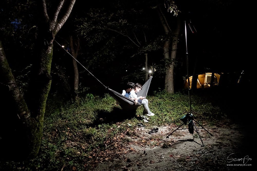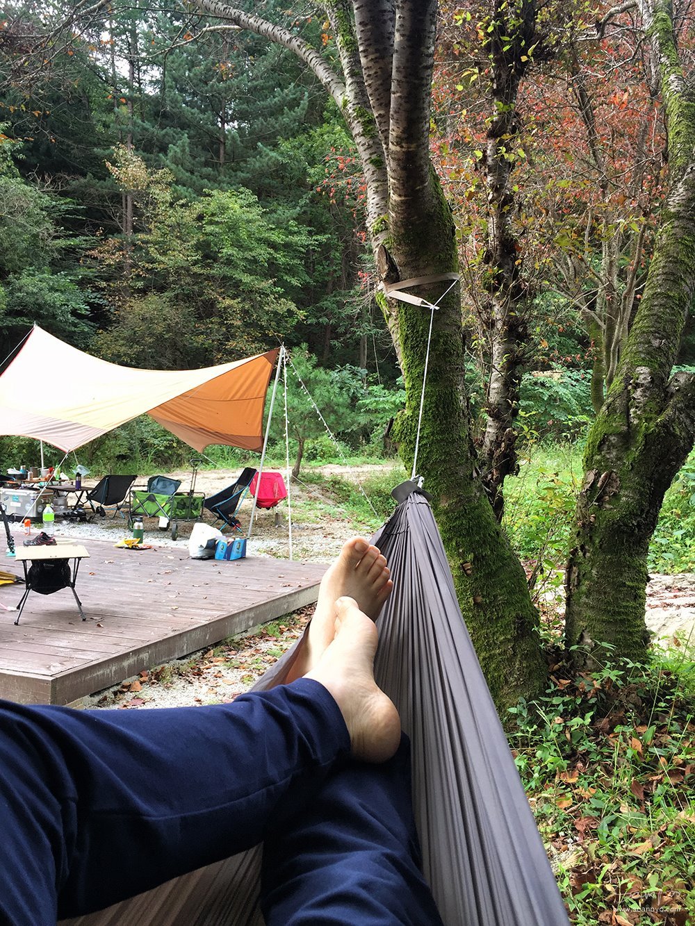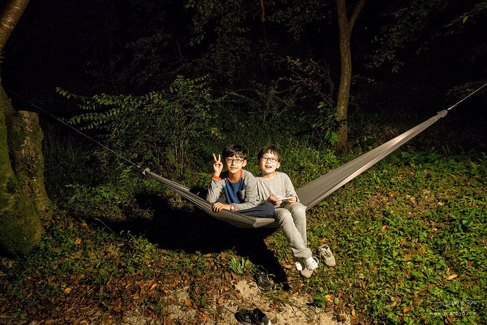 설치를 마치고 테스트를 위해 앉았다가 흔들흔들 한참을 누워 있었습니다. 해먹은 감히 캠핑으로 얻는 힐링의 절반이라 해도 불만이 없을 것 같습니다.