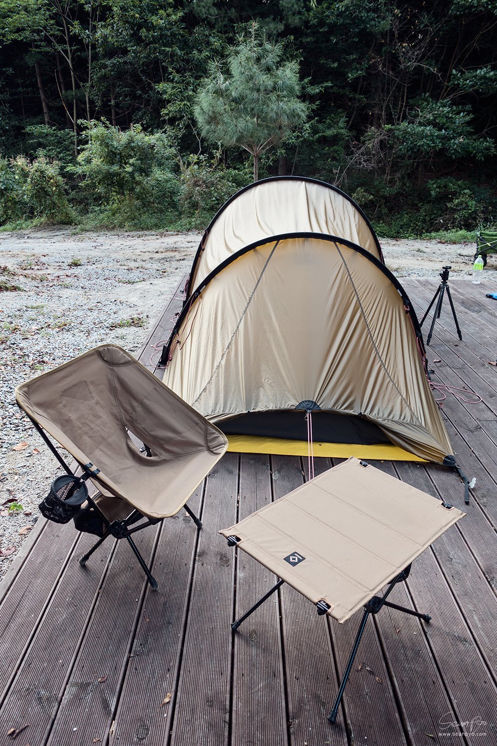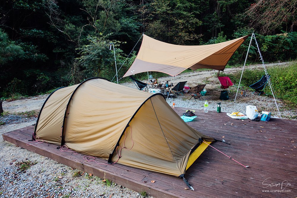 정리를 하다 문득 바라보니 타프와 텐트의 색상이 닮았다는 것을 발견합니다.