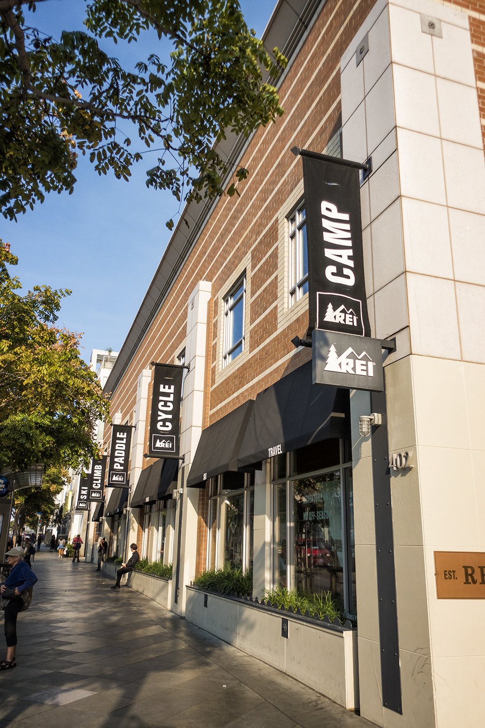 해변과 비교적 가까운 4번가에 주차를 하고 나오니 멀리 교차로에 REI 간판이 보입니다.