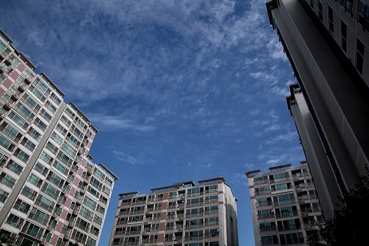 어느 아침 아파트 사이로 난 하늘 어딘가에 내가 있다고 상상해보면