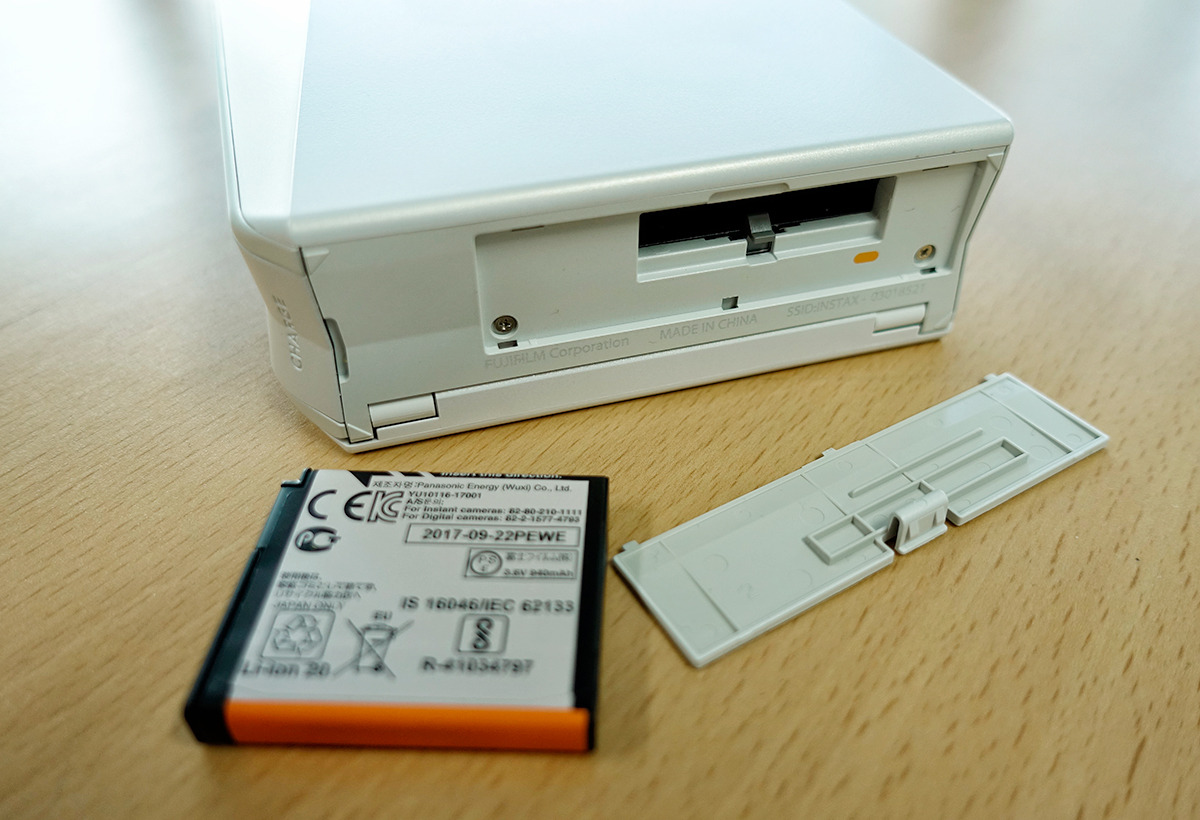 뒷면의 커버를 분리하면 배터리 슬롯이 있다. 여행 시 사용하는 휴대용 프린터들은 필름이 아니라 배터리 부족으로 곤란한 경우가 많았는데 완충 시 160장의 사진을 출력할 수 있다고 하니 이전의 프린터들과 비교할 수 없는 수준이다.