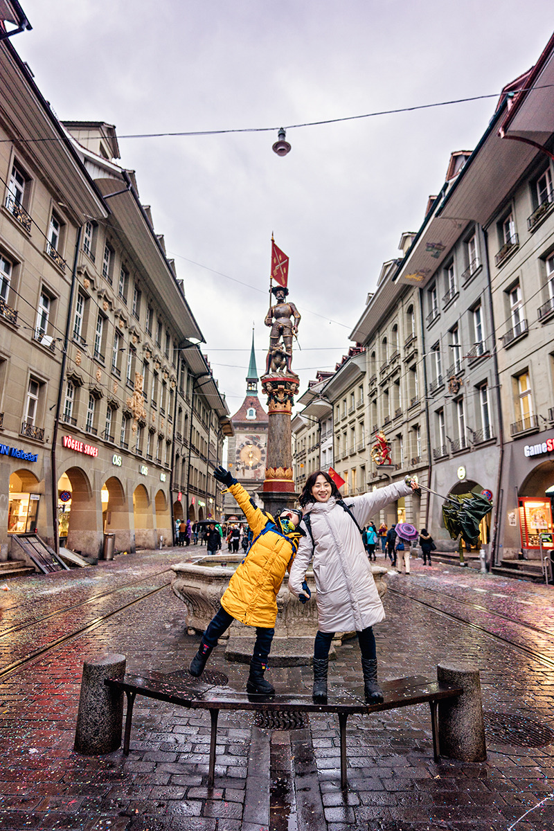 끝나지 않는 긴 퍼레이드를 함께 즐기다 보니 리기산의 산악열차, 케이블카, 눈썰매 따위는 어느새 잊어버렸다. 베른 축제는 하늘이 우리를 위해 준비한 깜짝 이벤트였다.