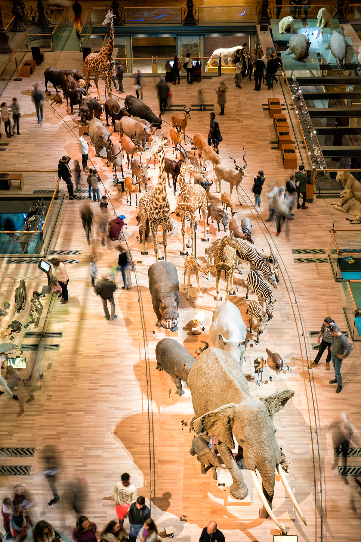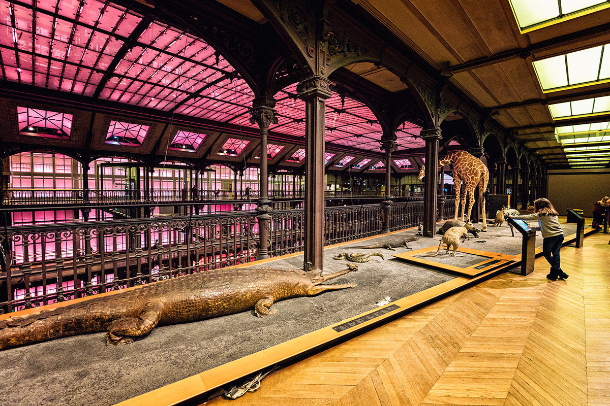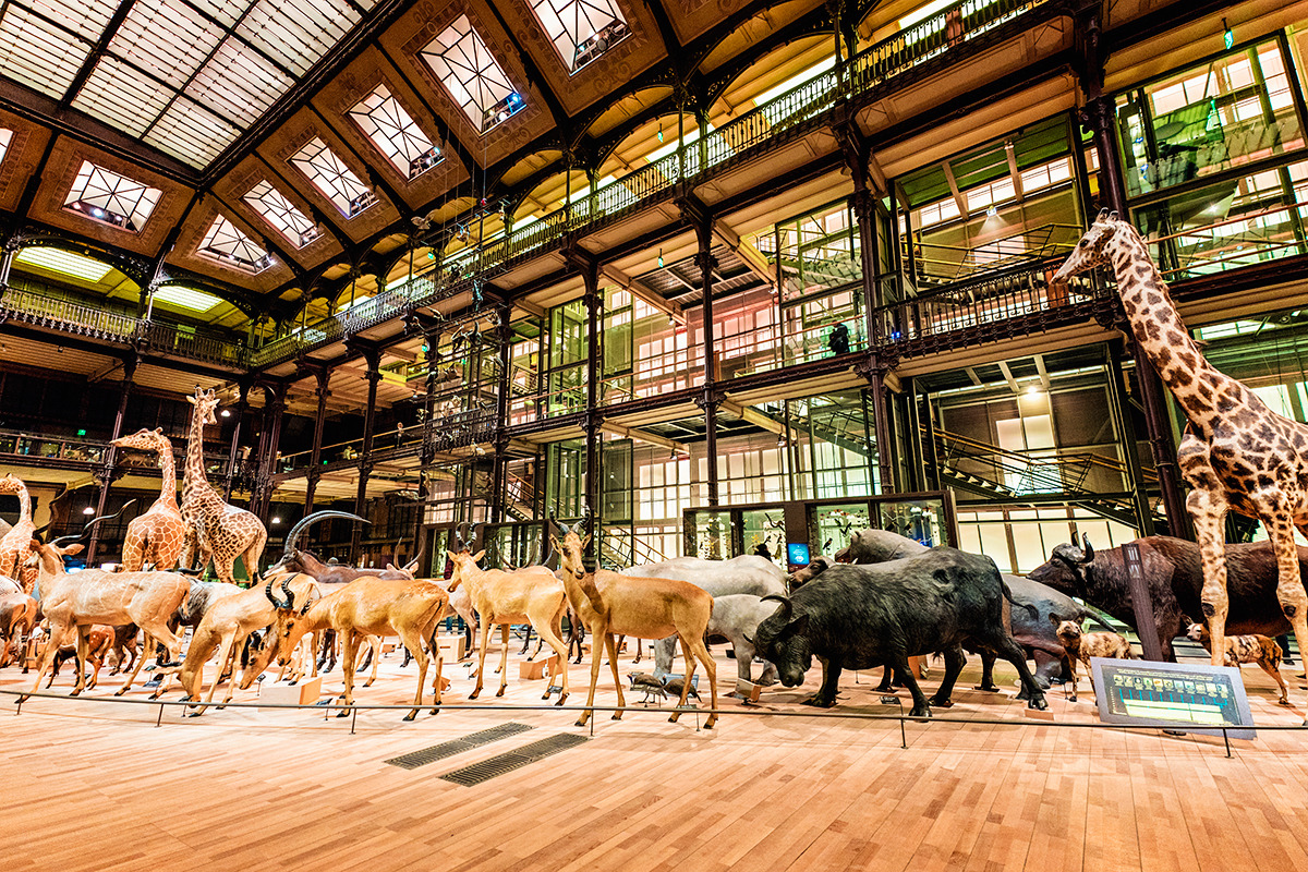 파리의 자연사 박물관은 보다 특별하다. 딱히 자연사에 관심 없는 사람에게도 추천하고 싶은 곳이 바로 파리 국립자연사 박물관이다. 규모로 보면 대진화 전시관(Grande Galerie de l’Évolution)에는 약 1억 점에 달하는 표본들이 소장되어있다고 한다. 소장품의 규모도 어마어마하지만 파리 자연사 박물관의 트레이트 마크는 노아의 방주를 재현한듯한 박물관 1층, 동물의 대규모 행렬 전시다.