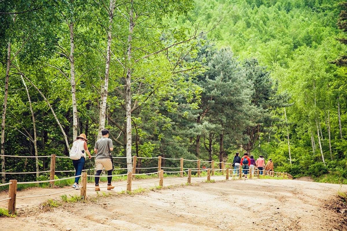 최근 난이도와 거리에 따라 다양한 등산코스가 조성되었지만 자작나무숲을 빨리 만나고 싶다면 원정로를 택하자. 1시간이면 자작나무 숲을 만날 수 있다.