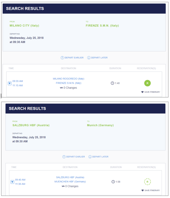 유럽 내 일부 열차는 레일 플래너 앱을 통해 예약할 수 있습니다.