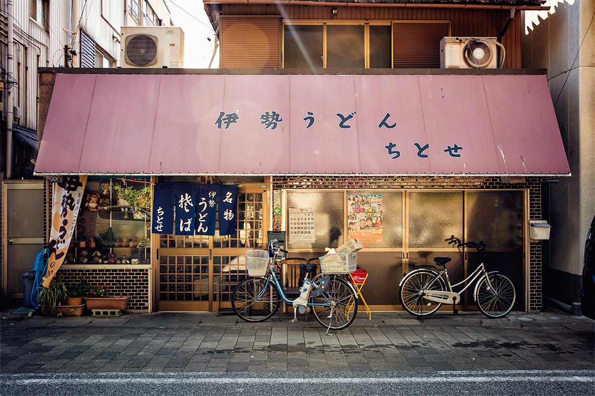 하루 행선지로는 조금 멀고 빡빡한 일정이지만 용감하게 길을 나섰다. 배웅을 나와 손을 흔들어주는 마쓰 유카타 씨. 이 지역 출신인 그가 추천한 곳은 검은색 국물로 유명한 이세우동 치토세(伊勢うどんちとせ)다.