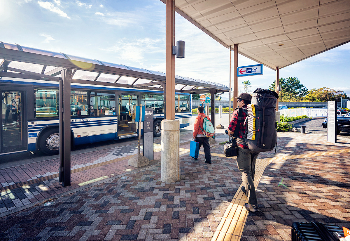 만약 미에현으로 여행을 계획했다면 오사카 공항보다 나고야 주부 국제공항을 이용하는 편이 접근성이 더 좋다. 주부 국제공항에서 미에현으로 이동하는 효율적인 방법은 고속선을 이용하는 것이다. 기차를 이용할 경우 나고야 시내로 들어가 긴테쓰 특급열차로 갈아타고 해안선을 따라 돌아가는데 2시간이 소요된다. 반면 고속선을 이용하면 47분 만에 미에현에 도착할 수 있다. 이세만을 건너 미에현에 도착하면 여객터미널 버스정류장에서 쓰역(津駅前)으로 가는 버스를 탈 수 있다. 쓰역은 긴테쓰 전철을 이용해 이세伊勢, 도바鳥羽, 시마志摩로 떠나는 미에현 여행의 출발점이다.