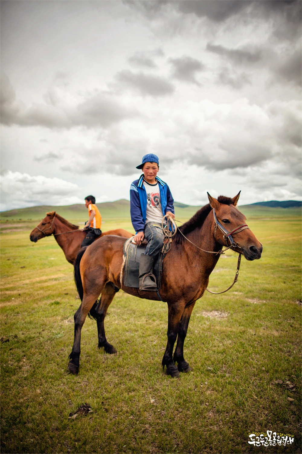 말을 탄 아이들과 초원 위에서 시간이 생겼다. 우리가 가까이에서 바라보는 말이 신기한 것처럼 소년들도 오랜만에 보는 외국인들이 신기했나 보다. 그들의 눈 빛에 수줍은 마음이 보였다. 허락을 받고 사진을 담았지만 그 자리에서 전달할 방법이 없었다. 그래서 이후 몽골로 여행을 떠날 때는 언제 마주칠지 모를 초원 위의 만남을 위해늘 폴라로이드 카메라를 들고 다니게 되었다.
