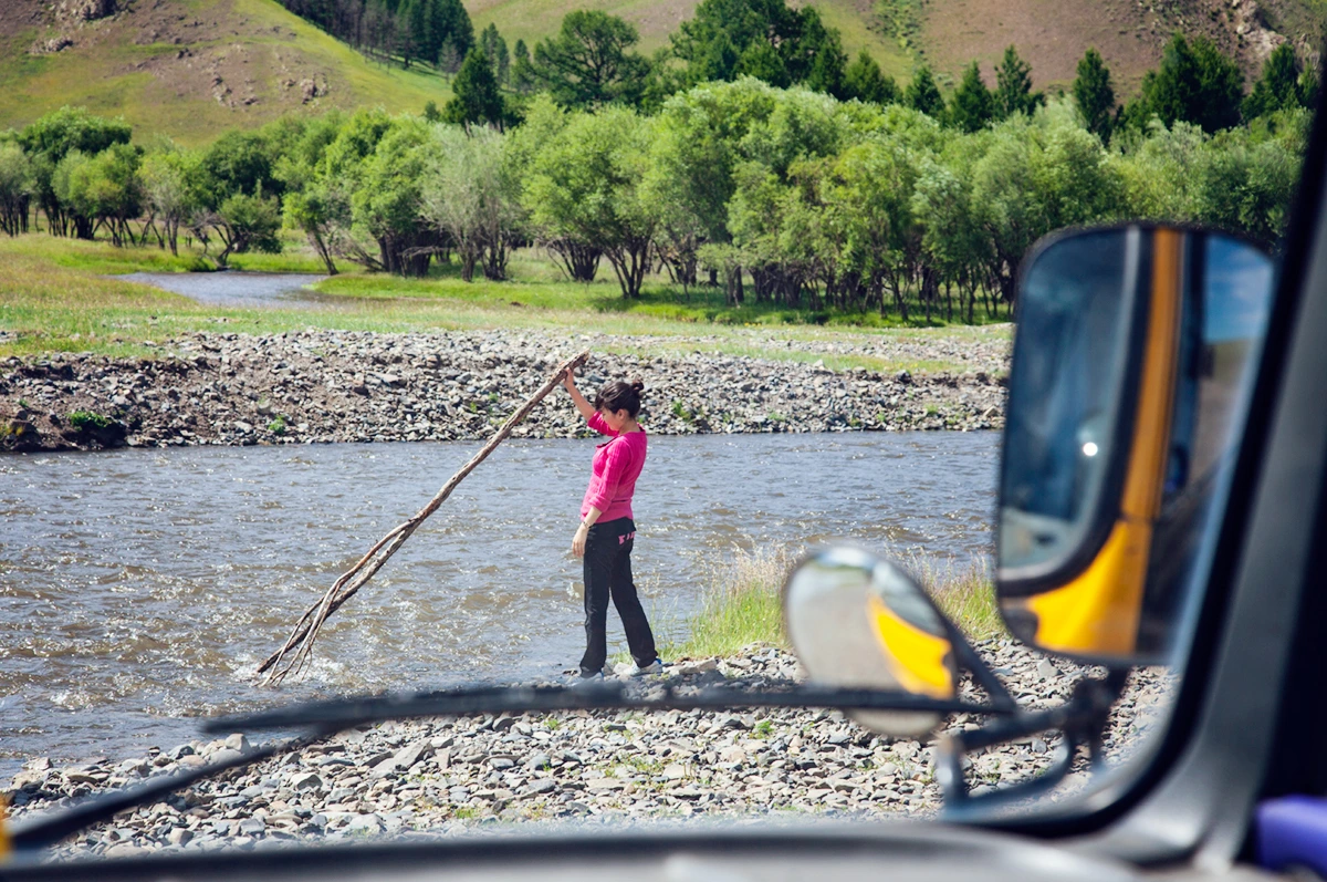 첫 몽골 여행, 챙헤르로 가는 길에 강을 만났다. 드라이버는 물길을 따라 올라가며 수심이 얕아 보이는 곳을 찾고 있었다.