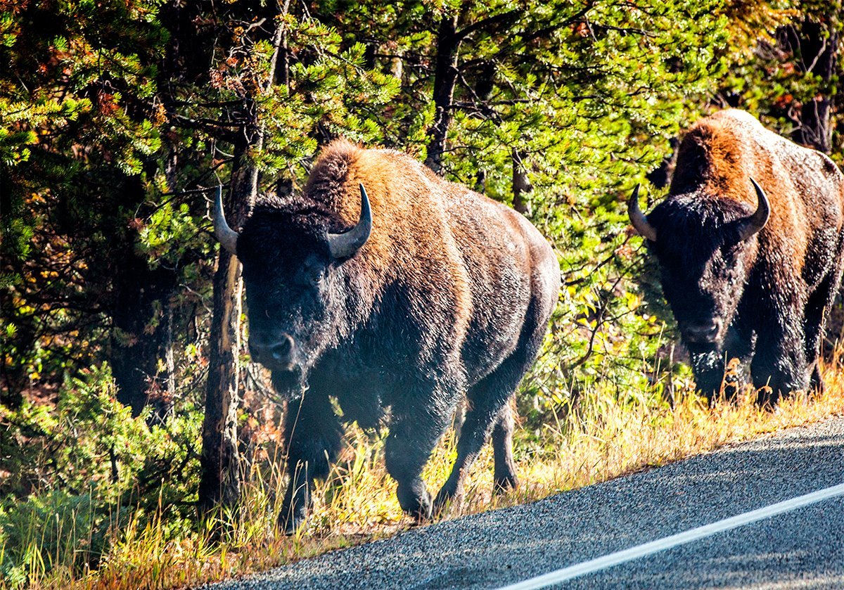 만약 주차장이 없는데 차들이 정차 중이라면 십중팔구는 야생동물 때문이다. 바이슨, 엘크, 곰 같은 야 생동물의 출현에 차를 갓길에 세우고 구경하는 모습을 종종 발견할 수 있다.