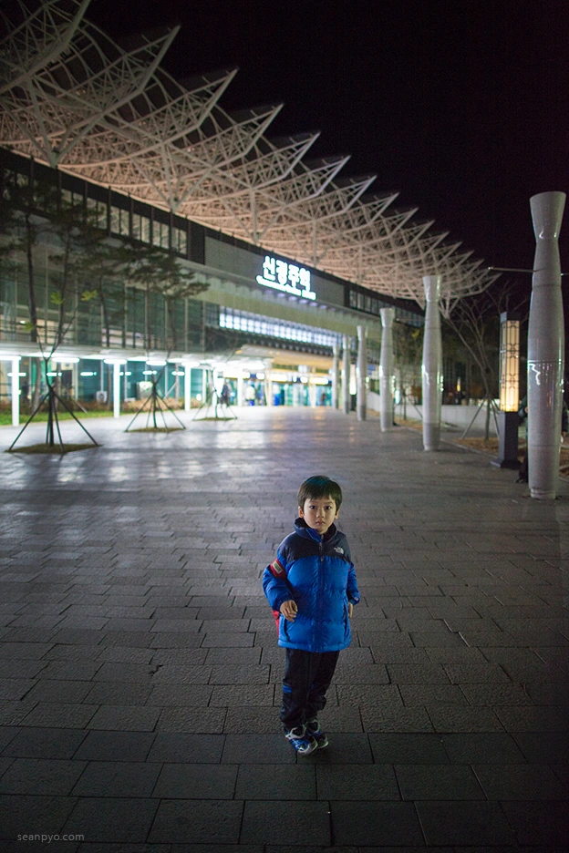 드디어 신 경주역! 2시간 정도 걸렸을까? 너무 빨리 도착해서 여행이라기보다는 옆동네에 놀러 온 기분이 들었다. 이미 어두워진 하늘 아래, 휑한 기차역에서 두 남자가 서 있다. 남자 둘이 여행을 하면 좀 외롭게 비칠 때가 있는데, 아이와 단 둘인 지금의 모습은 어떻게 비쳐질지 궁금했다. 곧 닥쳐 올 앞으로의 일들이 머릿속에서 하나 둘 줄을 서기 시작했다. 렌터카는 우리를 기다리고 있을까? 폐장 전 안압지에서 야경은 볼 수 있을까? 호텔은 아이와 하룻밤 보내기 적당하겠지?
