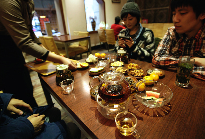 통런차방은 찻집이지만 식사도 가능하다. 심지어는 흡연도 가능한 곳이라 한다. 나는 식사보다는 이곳의 간식(과일과 과자)에 더 관심이 많았으므로 차를 시켰지만 - 과자도 과일도 - 어느것 하나 제대로 맛 볼 수 없었다. 아직 중국음식에 대한 편견이 마음 한구석에 차지하고 있는지 귤껍질을 까고 수박씨를 뱉으면서도 이게 정말 귤과 수박이 맞을까 하는 의구심을 떨칠 수 없었다. 하지만 중국은 이제 세계 어느누구도 무시할 수 없는 강국이 되었다. 어릴때 부터 듣고 자라온 중국에 대한 선입견, 이제는 버릴때가 되었다고 생각했다. 하지만 이러한 다짐과 상관없이 간식은 정말이지 맛이 없었다.