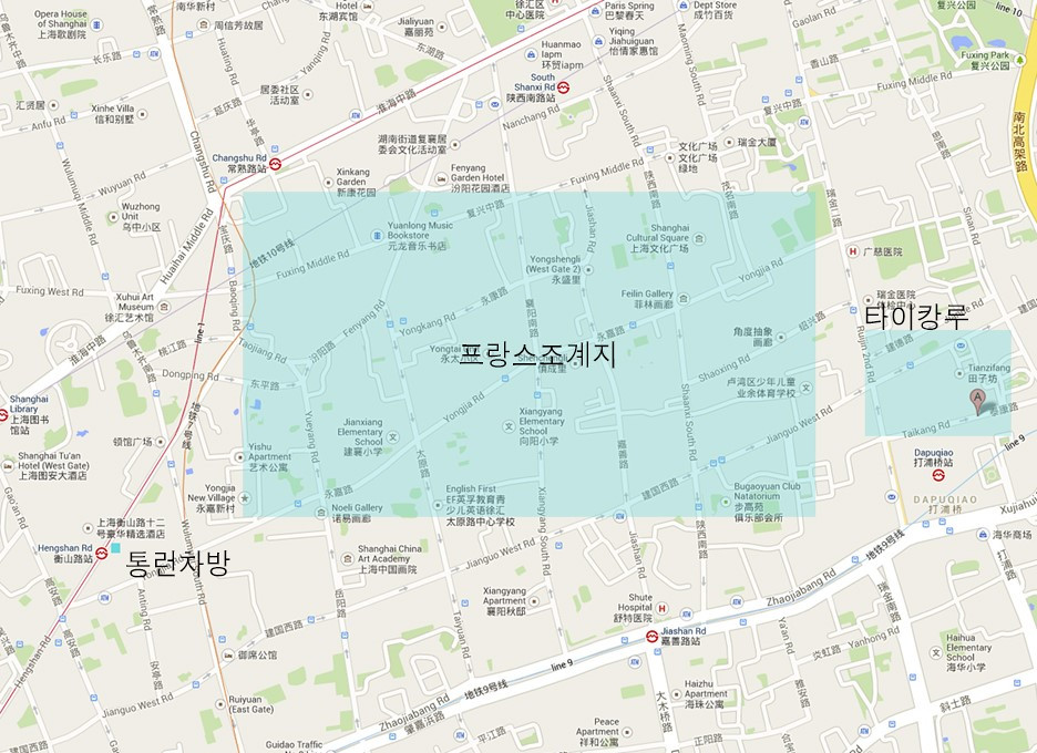 통런차방과 타이캉루가 프랑스조계지 근처라 해서 '마침 잘됐군!' 하며 연관을 지었지만 막상 지도를 살펴보니, 거리로 보나 교통편으로 보나 - 설렁탕과 단무지만큼이나 - 아무런 상관이 없는 곳으로 판명이 났다.