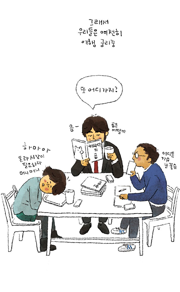 “맞아. 어디든 마음 맞는 사람과 함께 떠난다는 게 좋은 거 같아.”