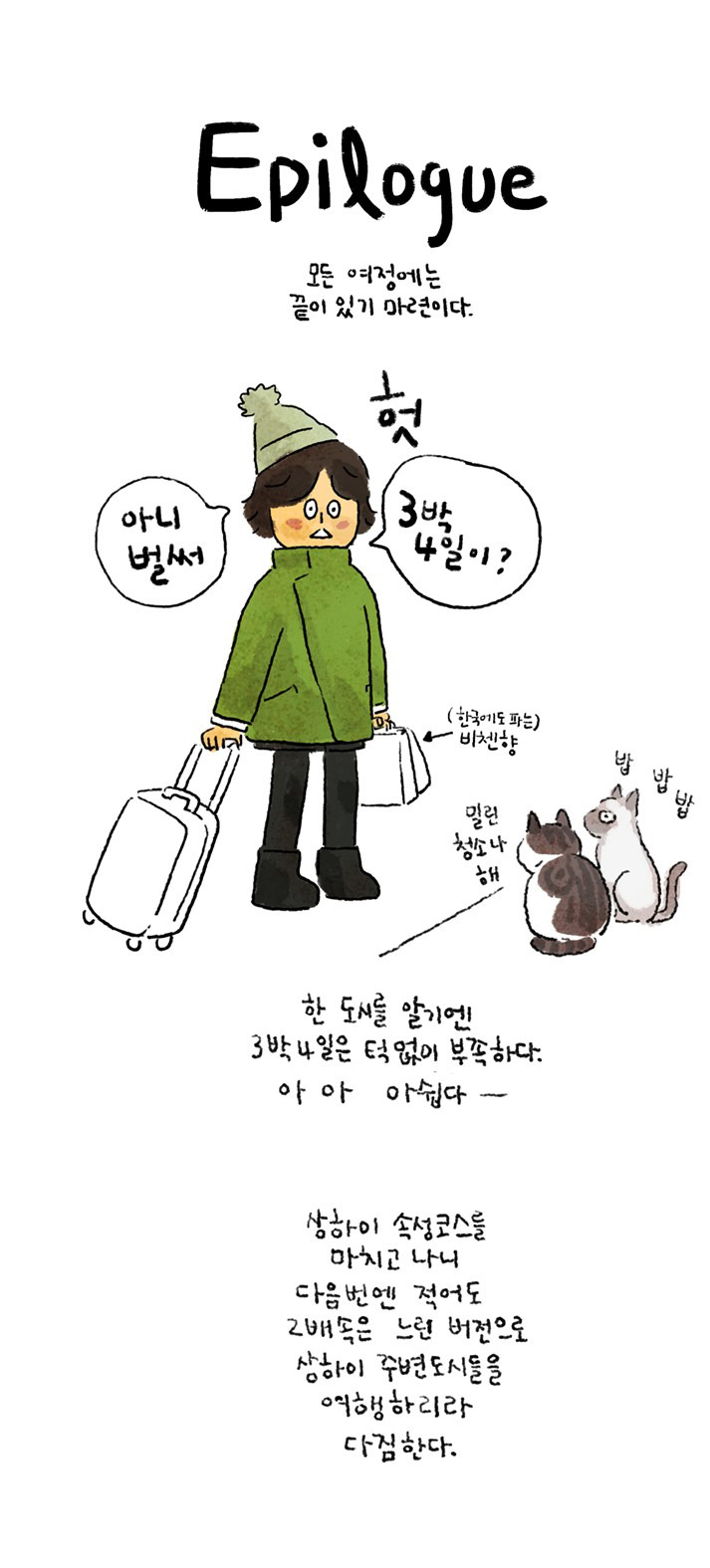 솔직히 짧은 여행 기간임에도 알차게 보냈기에, 또한 도시라는 익숙함도 있어서 그런지 상하이를 떠나는 것에 대한 아쉬움은 크지 않았다. 다만 떠나야 한다는 것 자체, 돌아가야 하고 여행의 끝에 이르렀다는 것에 대한 거리낌에 일행들은 다소 유쾌함이 줄은 모습이었다.