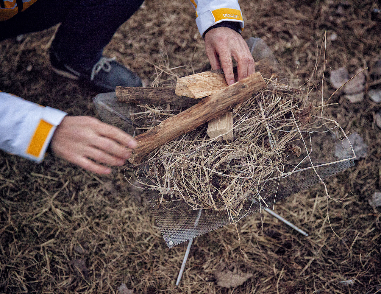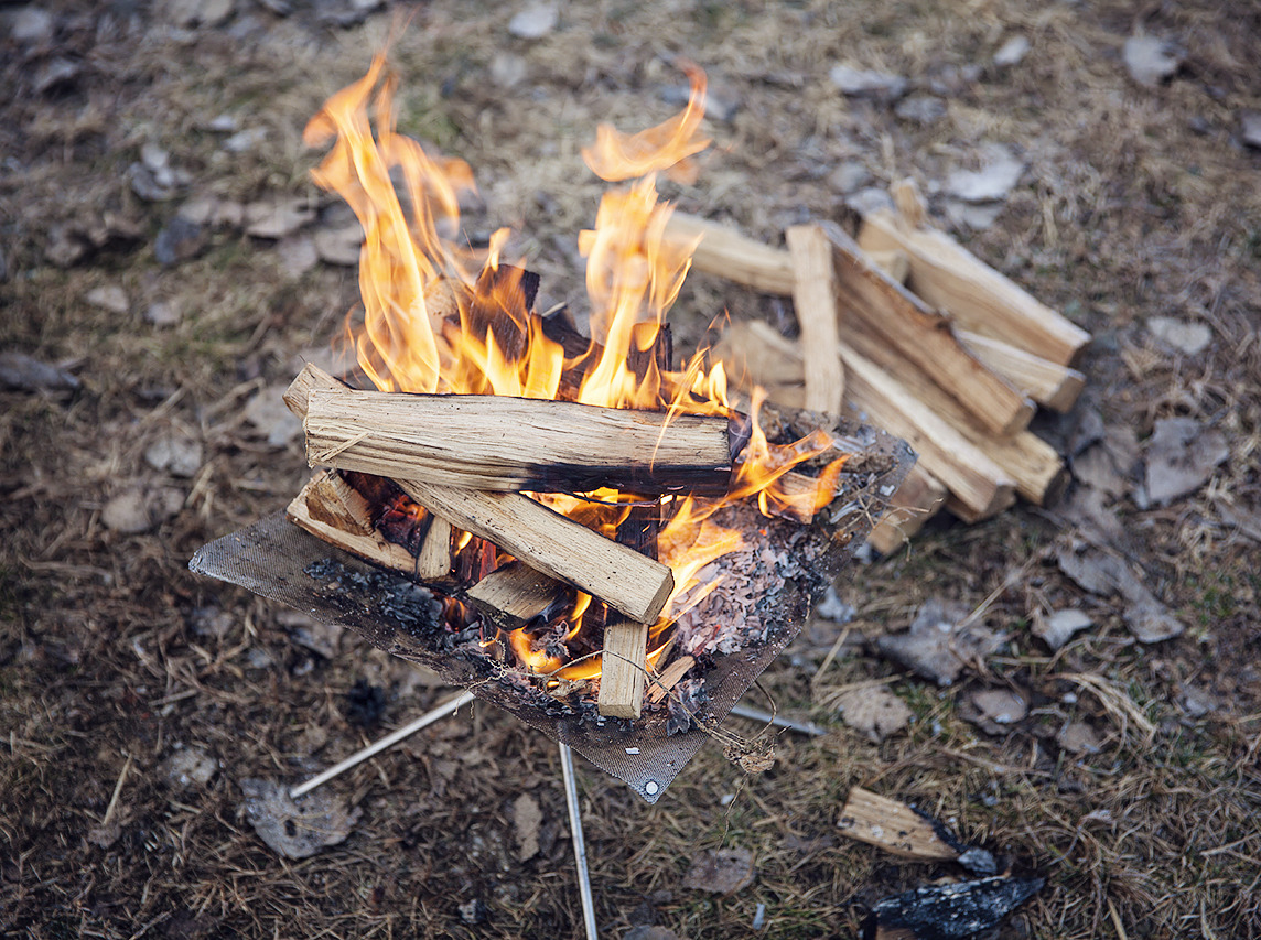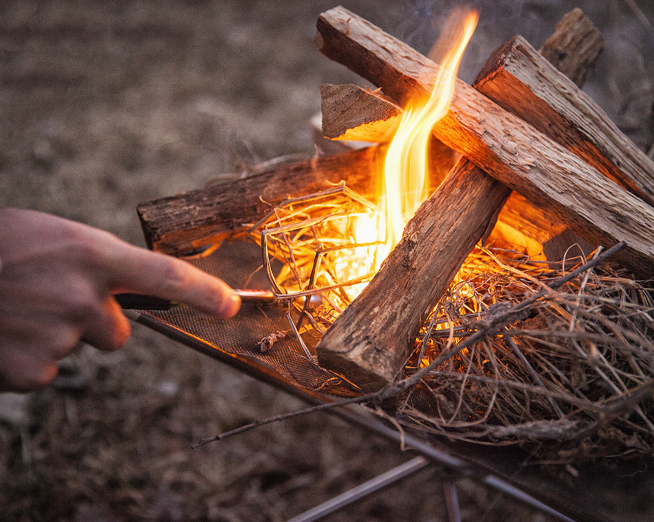 우리는 불을 지폈다. 가스 토치를 가져오지 않아서 주변 잔가지를 모아 작은 불로 장작을 태웠다.