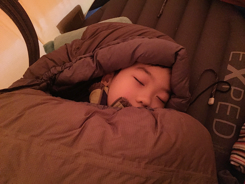 ※ 취침 시 아이의 침낭 발 아래쪽에 핫팩을 양말에 감싸 넣어주면 좋다.