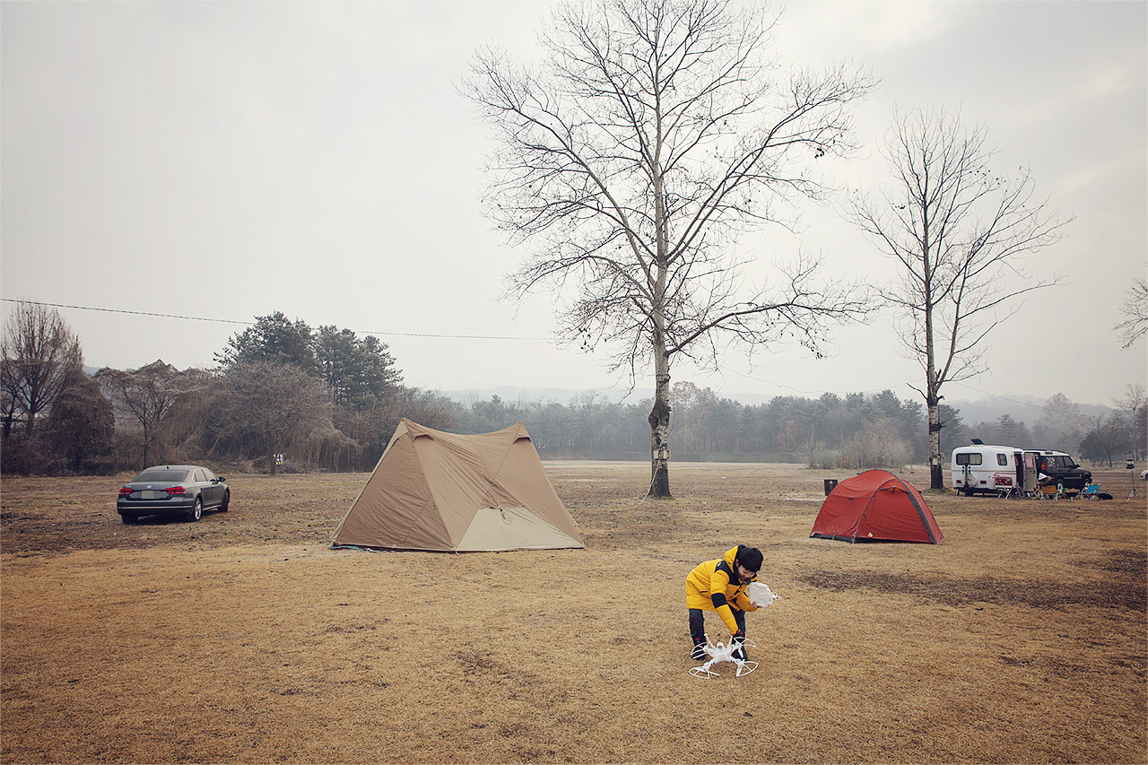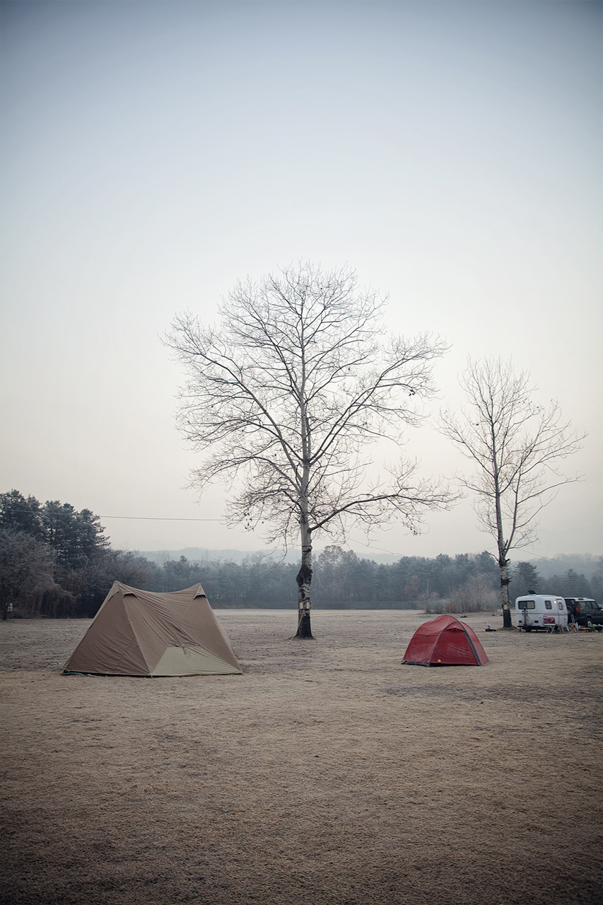 집을 나선 것은 오전이지만 캠핑장에 도착한 시각은 오후 4시, 겨울철이라 얼마 지나지 않아 해가 지겠다 싶을 무렵이었다. 구름이 두껍고 밀도가 높아 오늘내일 일몰과 일출을 찾아 간 사람들은 실망할 수 있겠다 싶은 하늘이었다.