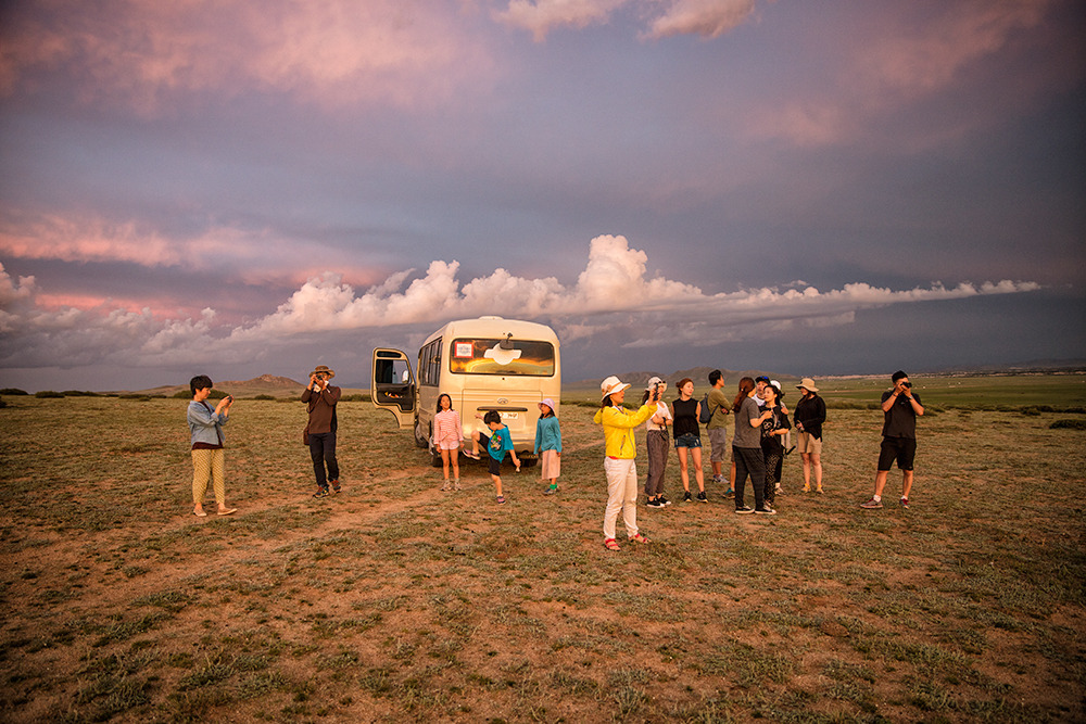 하지만 몽골의 자연에는 기다림이 없습니다. 정해진 길과 골목도 없고 꼭 사야하는 쇼핑리스트를 들고 상점가를 돌아다녀야 하는 스트레스도, 다음 행선지로 향하는 교통편을 타기위해 스마트폰을 반복해서 확인할 필요도 없습니다. 먹먹히 펼쳐진 지평선 위에서 그저 하고 싶은 것을 하면 되는 순도 100%의 자유로움이 주어질 뿐입니다.
