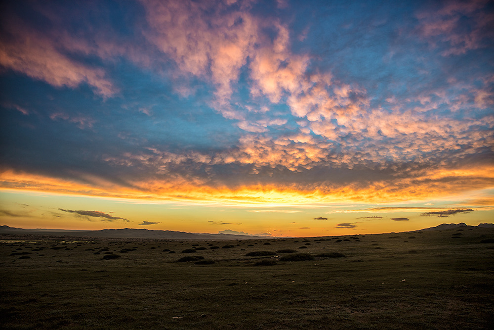 몽골에서 세상은 하늘과 초원 두개로 나뉘어 집니다. 하늘, 초대형 파노라마 스크린의 빛깔이 변해가는 것을 가만히 바라보는 것 만으로도 행복해 질 수있다는 사실을 어떻게 말로 표현할 수 있을까요? 경험해 보지 않고는 알 수 없습니다.