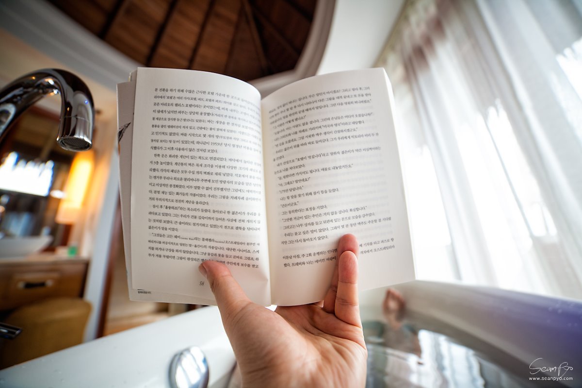 비도 그치지 않고 마침 가져온 책도 있으니 욕조에 앉아 읽기로 했다. 따듯한 물에 몸을 담그고 다섯 장 정도를 읽은 것 같다. 이런 곳까지 와서 책 읽을 시간이 있나 싶지만 나름 시간을 값어치 있게 사용하는 방법이 아니었을까...