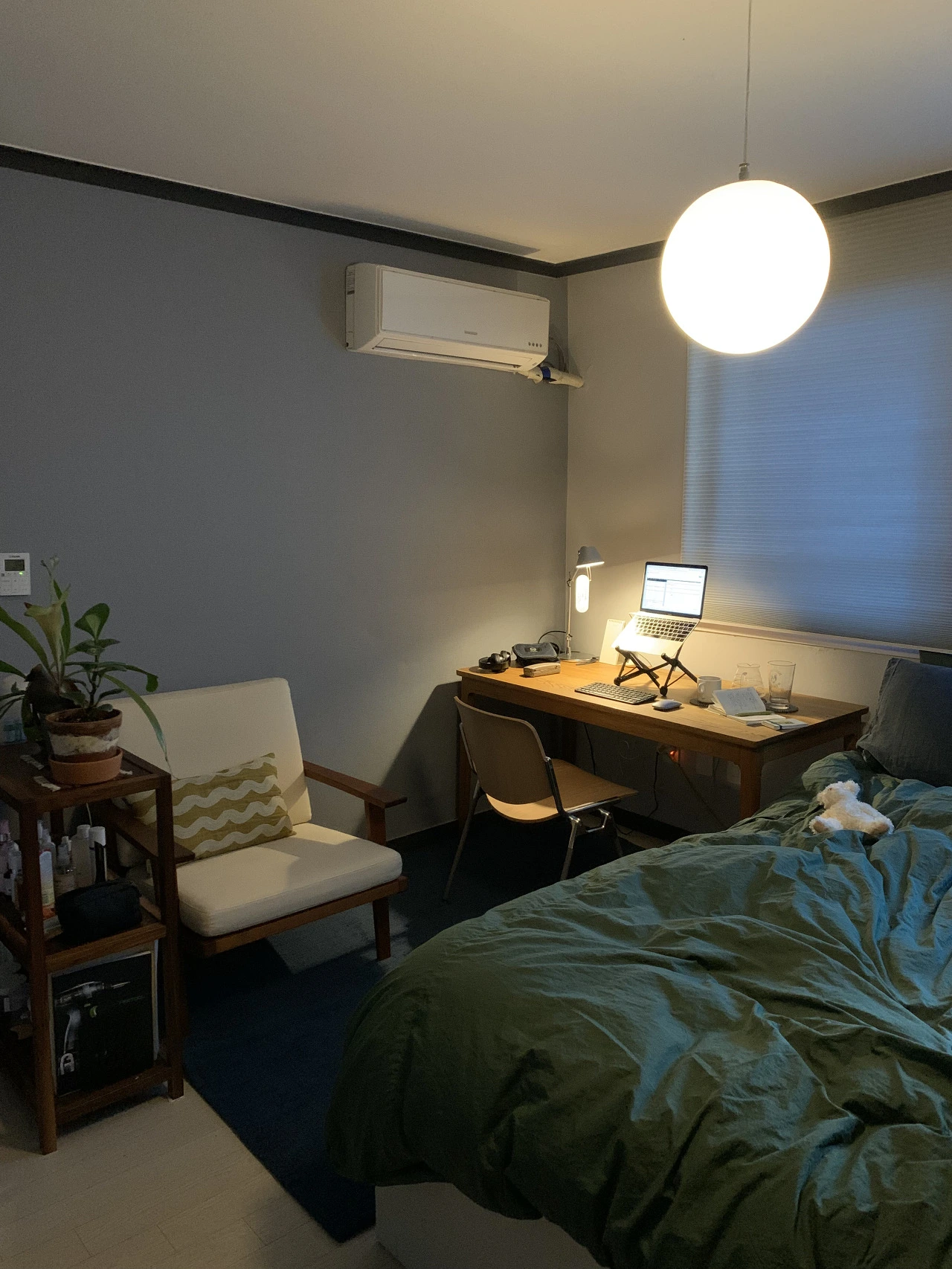 오래전부터 서재를 가지고 싶다는 생각을 했어서 책상과 의자, 조명을 사고 카페트 위에 암 체어와 함께 두었다. 침대 매트리스를 바꾸고 침대 프레임도 함께 장만했다. (올해 큰 소비가 많았다.)