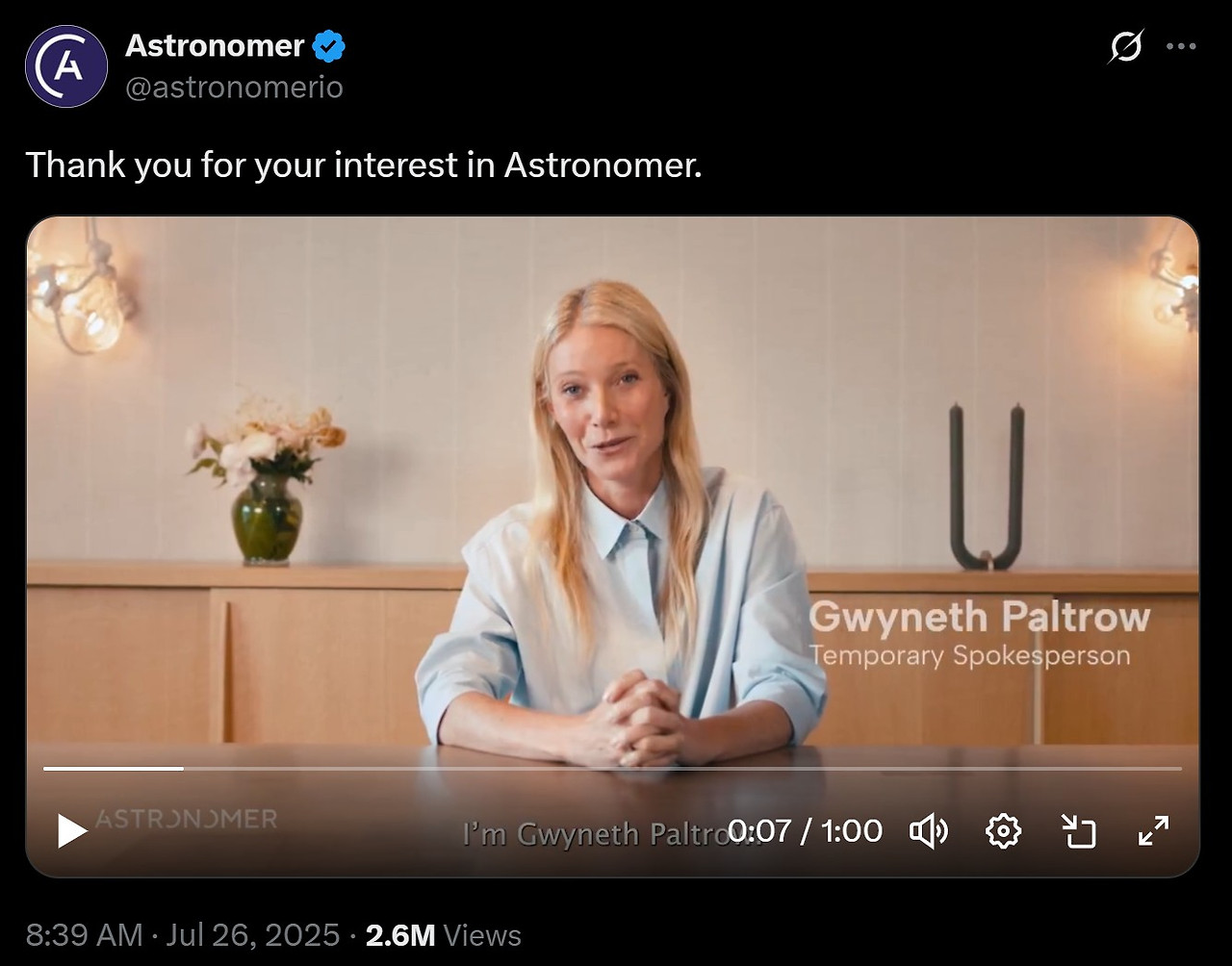 그런데 오늘, Astronomer 홍보팀에서 X에 1분짜리 영상을 내보냈다.