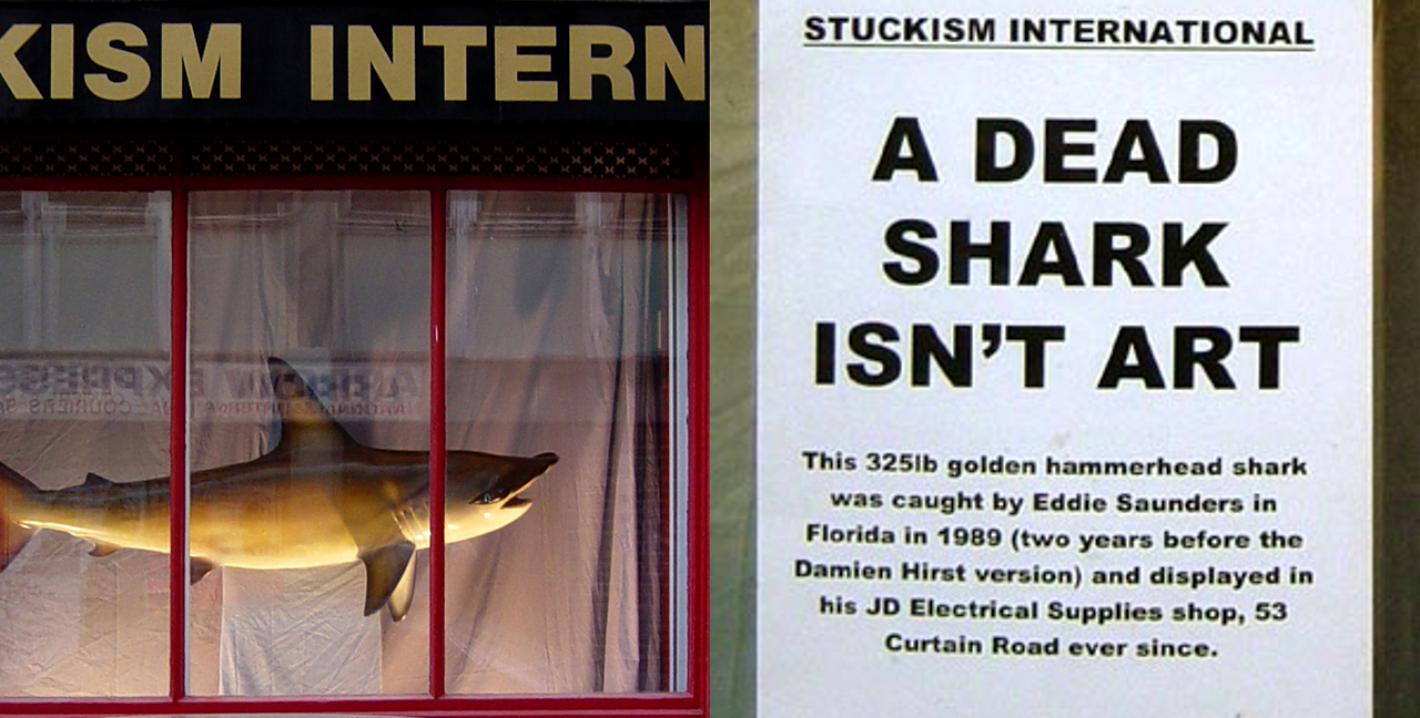 에디는 1989년 자신의 상어 작품을 런던 쇼어디치에 위치한 전자제품 상가에 전시했으나 큰 주목을 받지 못하다가, Hirst의 상어 작품이 큰 성공을 거둔 후, 2003년에 Stuckism 갤러리에서 "A Dead Shark Isn't Art"라는 이름으로 자신의 작품을 재전시하며 이 논란을 공식적으로 제기하였다.