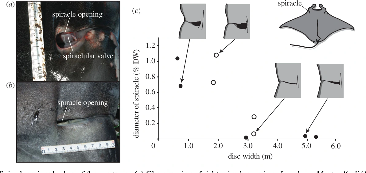 그리고 쥐가오리의 출생직후 여전히 큰 분수공을 갖고 있지만, 성장하면서 급격한 속도로 작아지기 시작했다. 이 시점 구강펌핑호흡에서 람환수로 새로운 호흡메커니즘을 이용하기 시작한 것이다.