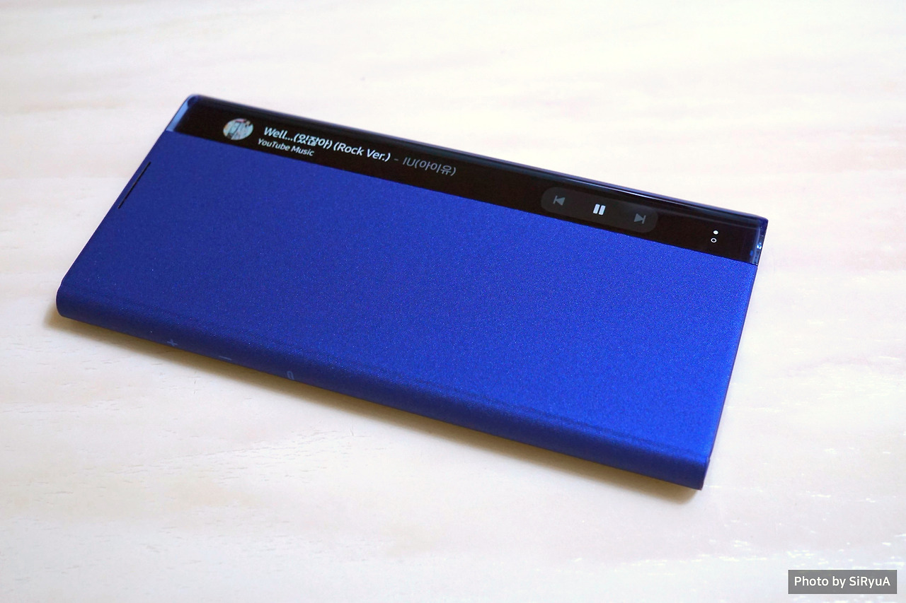재질이 천 재질이어서 그런 것일지도 모르겠지만 확실히 스마트폰을 들고 있는 것이 아니라 다이어리 수첩 하나를 들고 있는 것 같은 느낌을 제공해주고 있을뿐더러 반투명인 클리어 영역에서 정보를 제공해주고 있는 모습은 정말 감성적이고 디자인이 잘 뽑혀있습니다.