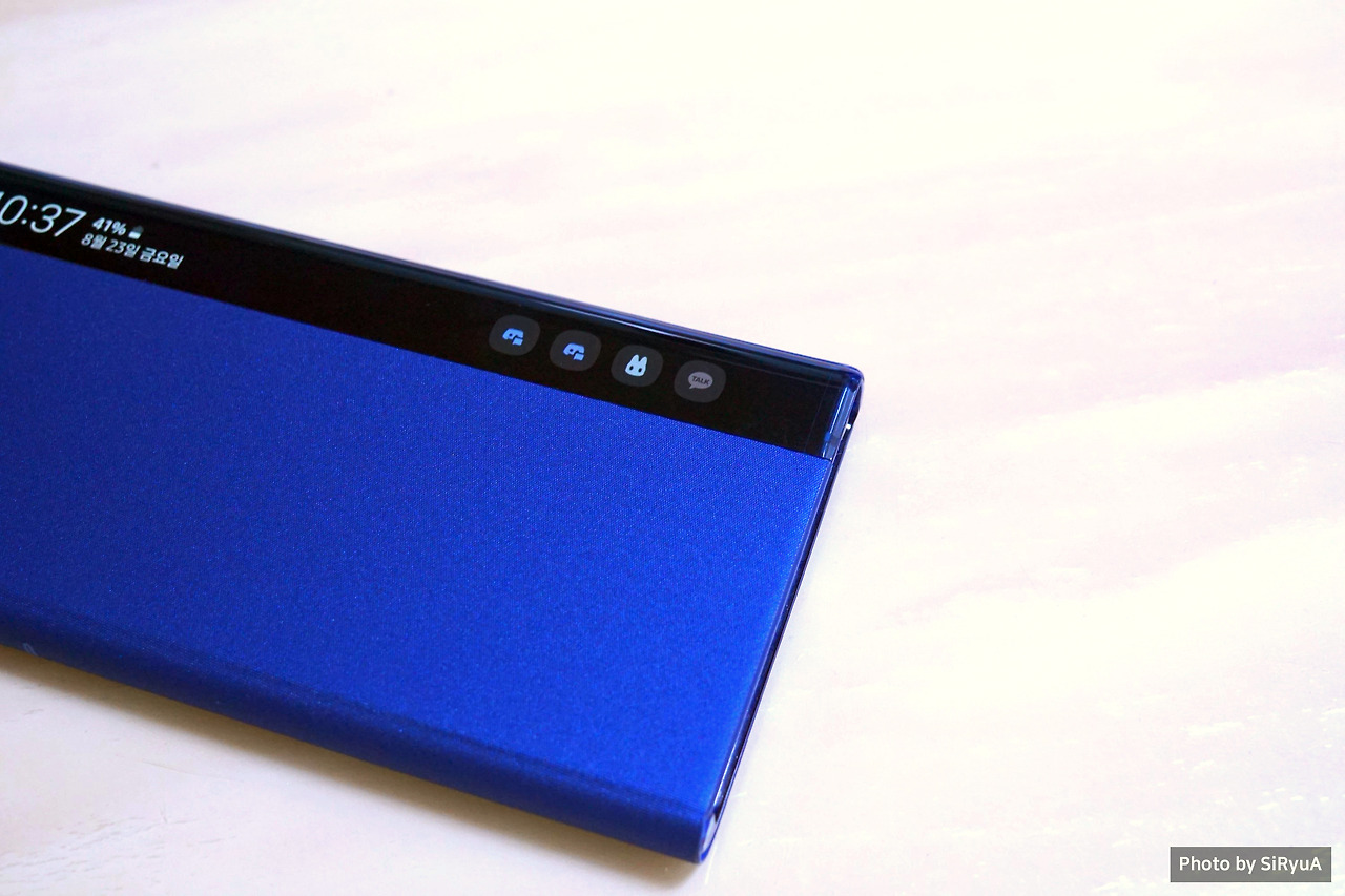 다만, 한 가지 부분에서 아쉬운 부분이 있다면.. 이번 갤럭시 노트 10 플러스 같은 경우 좌측면에 모든 버튼이 있는 형태이다 보니까 자연스럽게 플립 커버 접힘 부분에 모든 버튼이 위치할 수밖에 없는데.. 그 결과 버튼을 누르는 데 있어서는 큰 문제는 없지만 다소 누르는 느낌이 아쉽게 다가오기도 합니다.