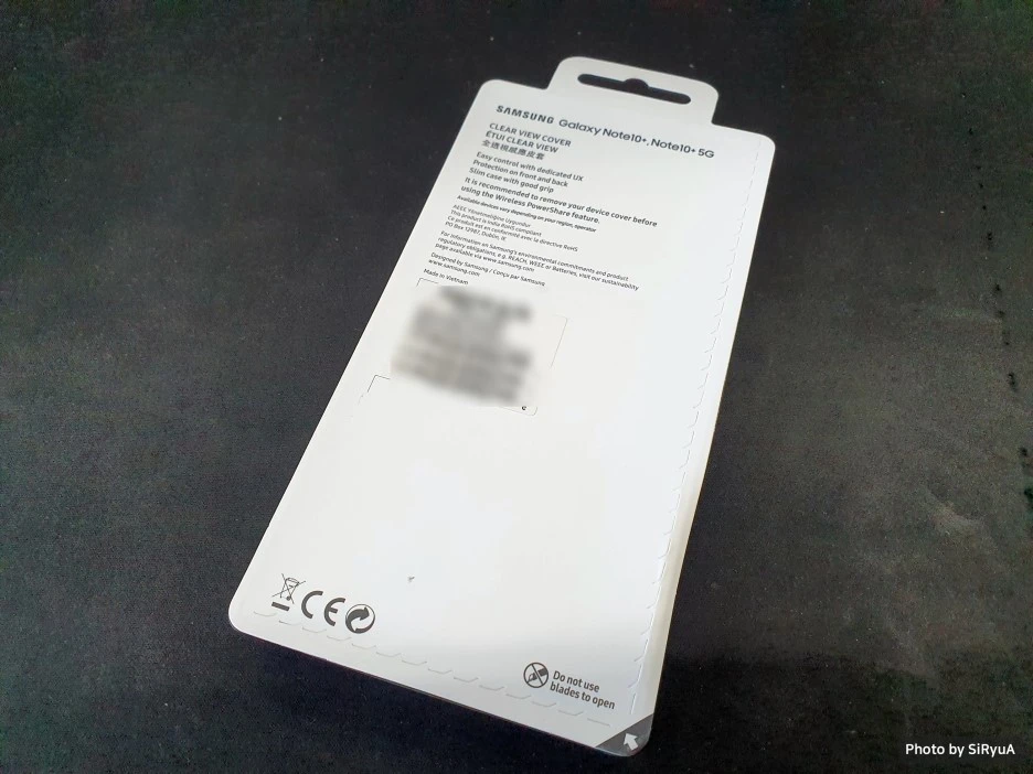 커버를 열어보면 많은 삼성 공식 액세서리 케이스들이 그러했듯이 제품을 안정적으로 고정시켜주는 좌우 측면 플라스틱 프레임이 자리하고 있습니다. 프레임 안으로는 제품 정보와 인증정보, 그리고 갤럭시 노트 10+ 브랜드 로고와 함께 베트남에서 생산되어 있다고 메이드 인 베트남이 적혀있습니다.